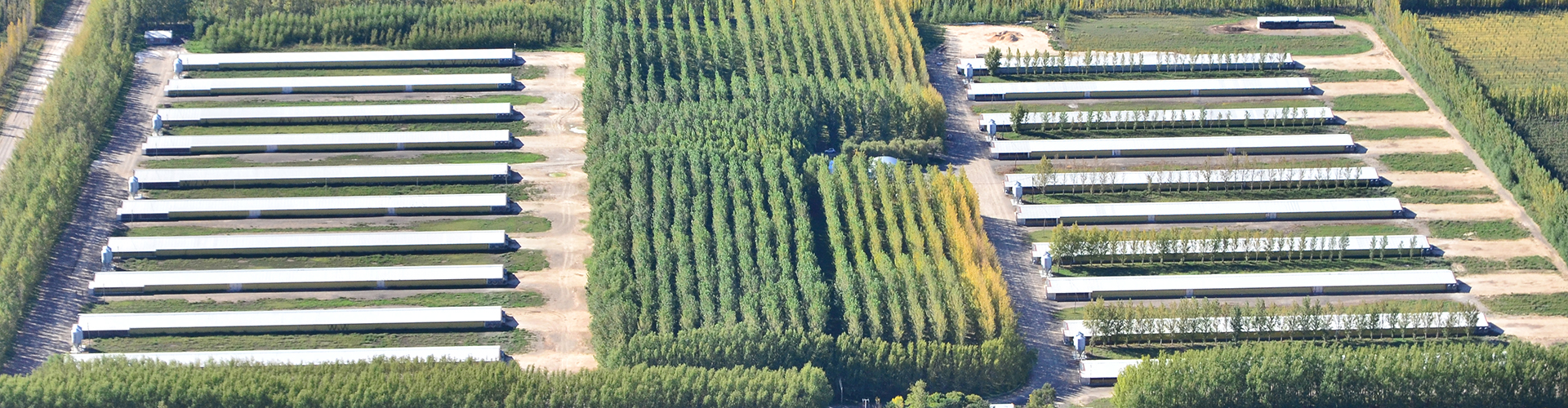 Los galpones están rodeados de forestación. Esta funciona como filtro natural, generando un microclima de aire puro y fresco ideal para el crecimiento de las aves.